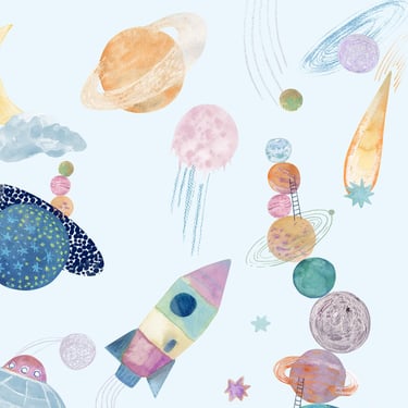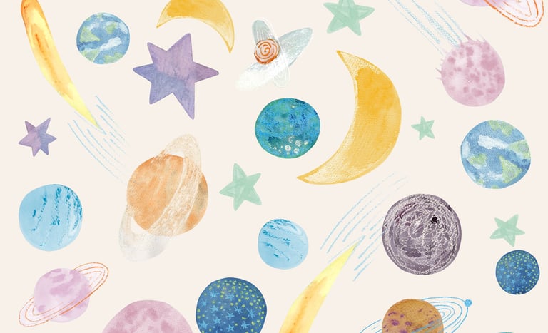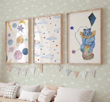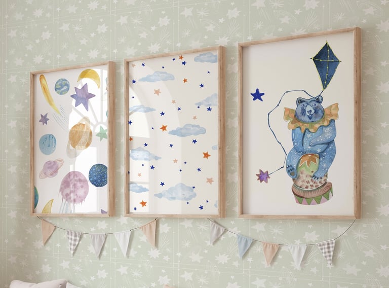 Nossas ilustrações são um convite para que as crianças naveguem pelos mistérios e encantamentos do universo, transformando cada quarto em um portal para a imaginação. Prepare-se para embarcar nessa aventura cósmica!